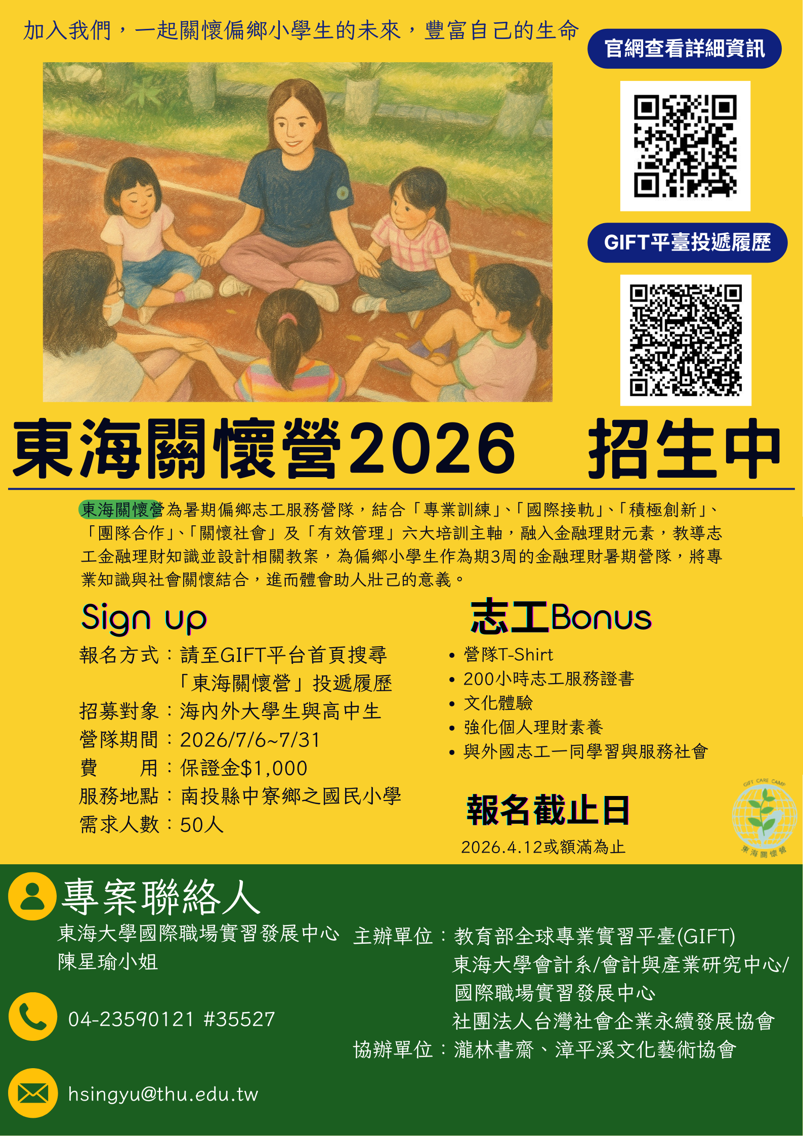 【東海關懷營|2026暑期偏鄉志工服務營隊招募】